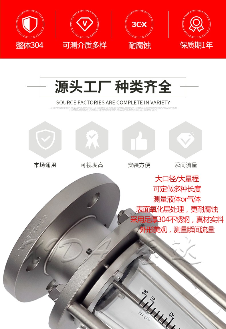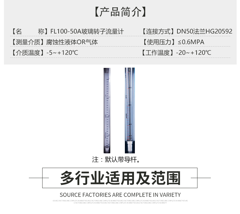 FL100-50A不銹鋼玻璃轉子流量計,具有測量范圍廣和大,口徑廣,更穩定等特點。一般用來測量低壓,常溫,不帶顆粒懸浮物的透明液體和氣體。廣泛應用于石油,化工,鋼鐵,電子,環保,電力,醫藥等工業領域。